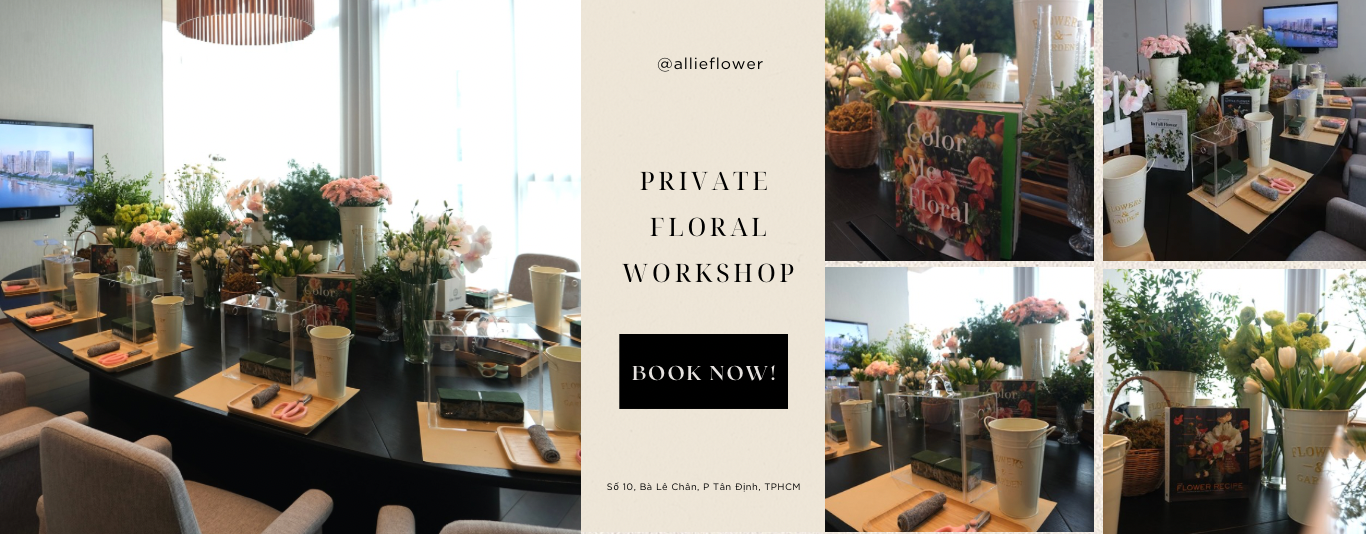 Allie Flower - Len lỏi giữa những con đường nhộn nhịp, sầm uất của khu phố Tân Định, một mùi hương ngan ngát, dịu ngọt dẫn chân bạn đến với một góc đường, nơi có những bông hoa vừa bừng nở. Đó là Allie Flower, một tiệm hoa thân thương mang đến cho bạn những cánh hoa mềm mại như tơ lụa, những bó hoa rực rỡ như cảm xúc nơi trái tim và mùi hương thơm ngát như hơi thở của tình yêu